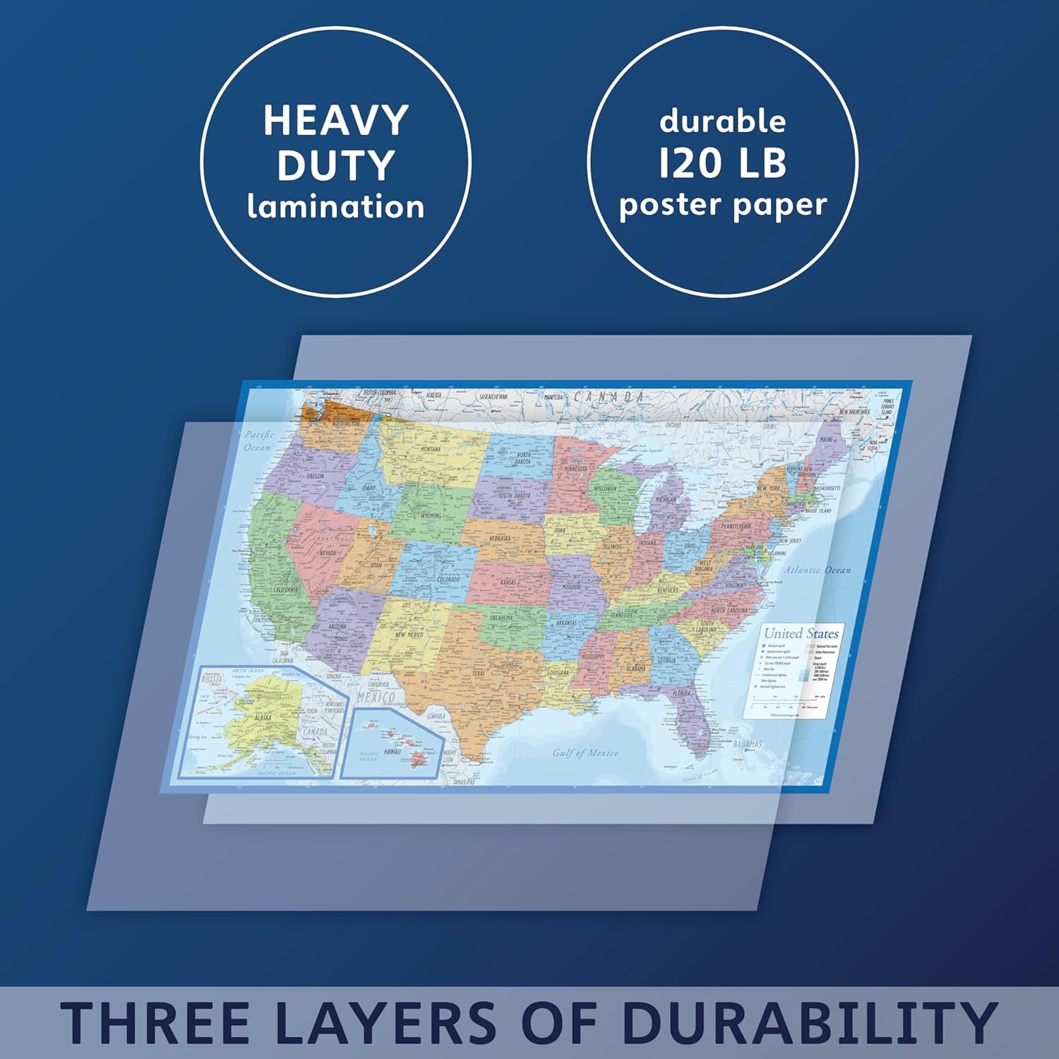 Discover the beauty and educational value of our Laminated World Map & US Map Poster Set, measuring 18″ x 29″. This stunning wall chart set features vibrant, detailed maps of the world and the United States, perfect for classrooms, offices, or home decor. Each map is expertly laminated for durability, ensuring they withstand the test of time while maintaining their vivid colors and clarity. Made in the USA, these maps are not only a great learning tool but also an attractive addition to any wall. Ideal for geography enthusiasts, students, or anyone looking to enhance their space with informative art. Elevate your environment with our high-quality laminated maps today!